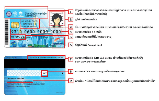 บัตรชำรุดจากข้อบกพร่องของตัวบัตรเองหรือขั้นตอน >> ในกรณีที่ข้อเท็จจริงปรากฏว่าบัตรสวัสดิการแห่งรัฐไม่สามารถใช้การได้อันเนื่องมาจากข้อบกพร่องของตัวบัตรเองหรือขั้นตอนการออกบัตร ผู้มีสิทธิ์สามารถดำเนินการขอเปลี่ยนบัตรใหม่ได้ที่สาขาของ บมจ.ธนาคารกรุงไทย โดยไม่เสียค่าใช้จ่าย ดังนี้