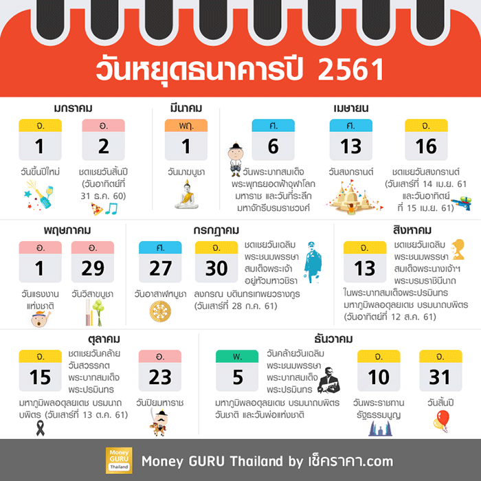 วันหยุดธนาคารประจำปี 2561 มาแล้วจ้า!