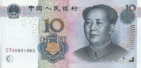 จีนได้ออกแบบธนบัตรโดยใช้สัญลักษณ์ผู้นำประเทศ ร่วมกันกับภาพมงคลอื่นโดยเฉพาะภาพน้ำ บนธนบัตร 10 และ 20 หยวน ด้านหนึ่งจะเป็นภาพของ เหมา เจ๋อ ตุง ผู้ก่อตั้งพรรคคอมมิวนิสต์จีนในสมัยที่ยังหนุ่มๆ ส่วนบุคลิกอื่นจะปรากฎอยู่ในธนบัตรราคาอื่นแตกต่างกันไป ส่วนอีกด้านหนึ่งจะเป็นภาพแหล่งน้ำสำคัญที่โด่งดังของจีน คนจีนเชื่อว่าแหล่งน้ำ คือแหล่งของความมั่งคั่ง เงินทอง ความอุดมสมบูรณ์อันยอดเยี่ยมที่สุด ด้วยเหตุนี้ จีนจึงเลือกภาพน้ำมาเป็นสัญลักษณ์หลักในการออกแบบธนบัตร ตัวอย่างเช่น มีภาพแม่น้ำฮวงโห อยู่บนธนบัตร 5 หยวน แม่น้ำแยงซีเกียงอยู่บนธนบัตร 10 หยวน แม่น้ำหลีเจียง อยู่บนธนบัตร 20 หยวน ส่วนธนบัตร 50 หยวน เป็นภาพน้ำตกอันงดงาม เป็นต้น จากภาพมงคลบนธนบัตรอาจส่งผลให้จีนในปัจจุบัน เป็นประเทศที่ทรงอิทธิพลทั้งด้านอำนาจ และเงินตราอันโดดเด่น ที่มีอัตราการเติบโตอย่างต่อเนื่องทางเศรษฐกิจที่ไม่แพ้ใครในโลกเลยทีเดียว