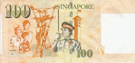 สิงคโปร์ได้เลือกสัญลักษณ์มาออกแบบบนธนบัตรอยู่ 2 แนวทาง คือ ยุคแรกจะเลือกภาพปลา นก มังกร และเรือสำเภา ซึ่งสื่อถึงความมั่งคั่ง มาอยู่บนธนบัตร ปลาเป็นสัญลักษณ์ของความอุดมสมบูรณ์ อิ่มหนำสำราญ มังกรสื่อถึงพลังความยิ่งใหญ่ในด้านอำนาจ ความมั่นคง และสติปัญญา อัจฉริยะความสามารถ เรือสำเภาได้นำโอกาสใหม่มาพร้อมความมั่งคั่งตลอดเวลา จากการพัดพาของลม และน้ำจากทะเลให้เข้ามาสู่พื้นดิน