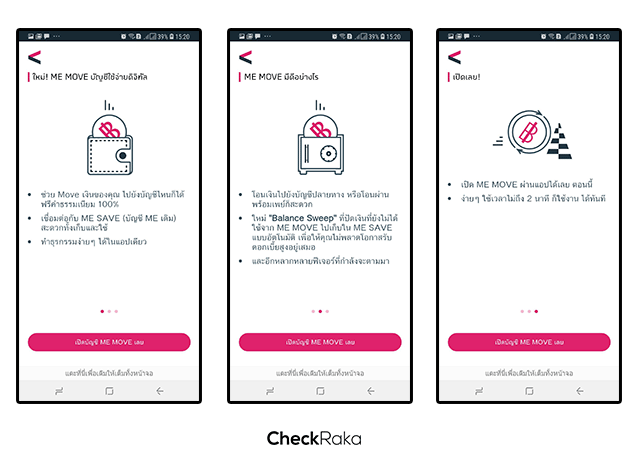 - หากต้องการเปิดบัญชีต้องมีบัญชี ME SAVE ก่อน จึงจะสามารถเปิดบัญชี ME MOVE ได้ (ไม่สามารถเปิดบัญชี ME MOVE ได้ทันที)