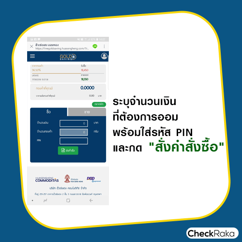- ระบุจำนวนการถอน (สลึง หรือบาททอง) พร้อมระบุ PIN เพื่อยืนยันการถอนทองคำ