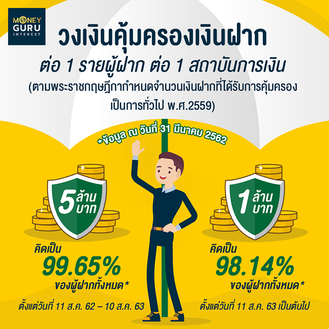 ซึ่งจากความคุ้มครองที่ได้รับ 5 ล้านบาท ต่อ 1 ราย ต่อ 1 สถาบันการเงิน ผู้ฝากอาจจะกระจายเงินฝากที่มีอยู่ไปในสถาบันการเงินหลายๆ แห่ง เพื่อให้ครอบคลุมกับจำนวนเงินที่จะได้รับความคุ้มครองได้นะคะ และหลังจากวันที่ 11 สิงหาคม 2563 ความคุ้มครองเงินฝากจากสถาบันคุ้มครองเงินฝากจะลดลงเหลือ เพียง 1 ล้านบาท ต่อ 1 ราย ต่อ 1 สถาบันการเงินเท่านั้น