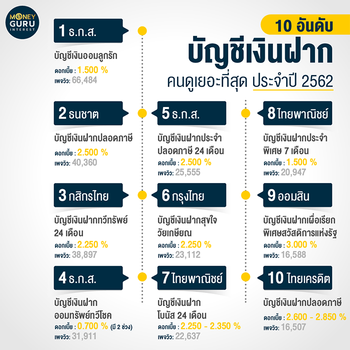 วันนี้เช็คราคาพามาส่งท้ายปีกับ 10 อันดับสุดยอดบัญชีเงินฝากที่คนดูเยอะสุด ประจำปี 2562 จากการเก็บสถิติบนเว็บไซต์