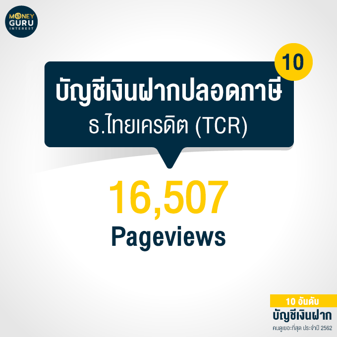 อันดับ 10 "บัญชีเงินฝากปลอดภาษี" ธนาคารไทยเครดิต (TCR) : 16,507 Pageviews