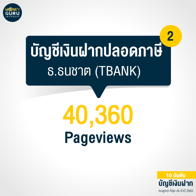 อันดับ 2 "บัญชีเงินฝากปลอดภาษี" ธนาคารธนชาต (TBANK) : 40,360 Pageviews