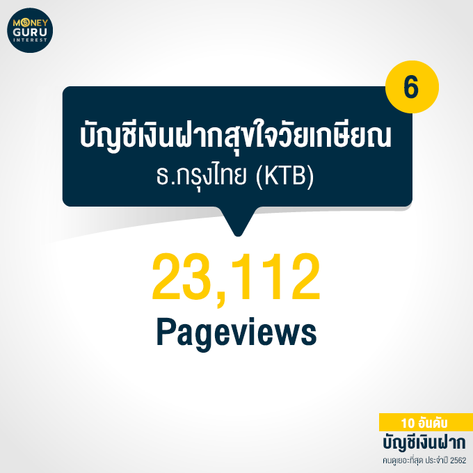อันดับ 6 "บัญชีเงินฝากสุขใจวัยเกษียณ" ธนาคารกรุงไทย (KTB) : 23,112 Pageviews
