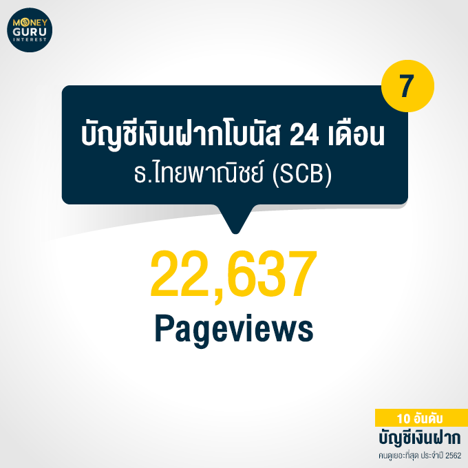 อันดับ 7 "บัญชีเงินฝากโบนัส 24 เดือน" ธนาคารไทยพาณิชย์ (SCB) : 22,637 Pageviews