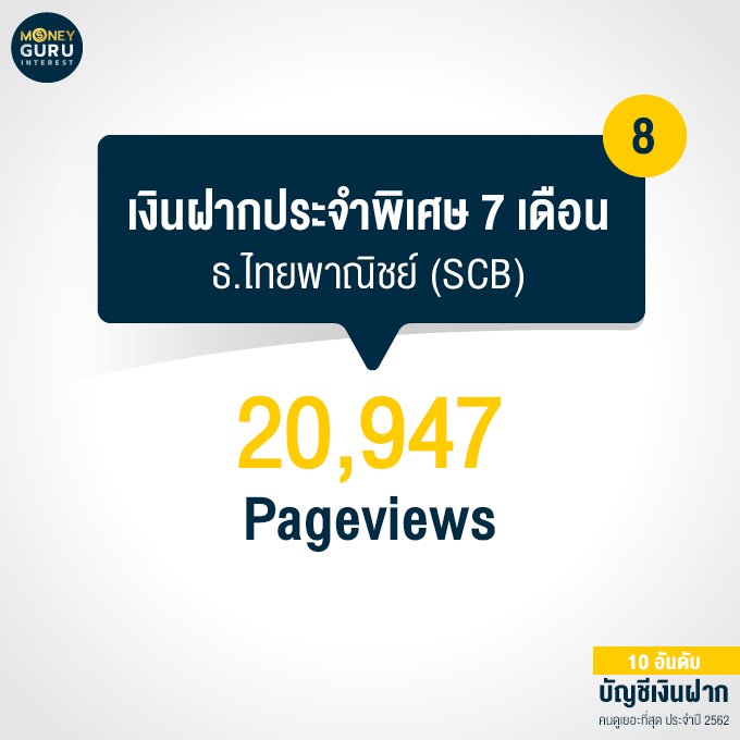 อันดับ 8 "บัญชีเงินฝากประจำพิเศษ 7 เดือน" ธนาคารไทยพาณิชย์ (SCB) : 20,947 Pageviews