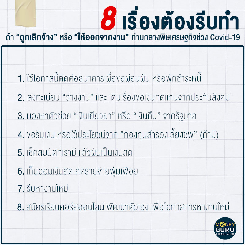8 เรื่องต้องรีบทำ ถ้า "ถูกเลิกจ้าง" หรือ "ให้ออกจากงาน" ท่ามกลางพิษเศรษฐกิจช่วง Covid-19