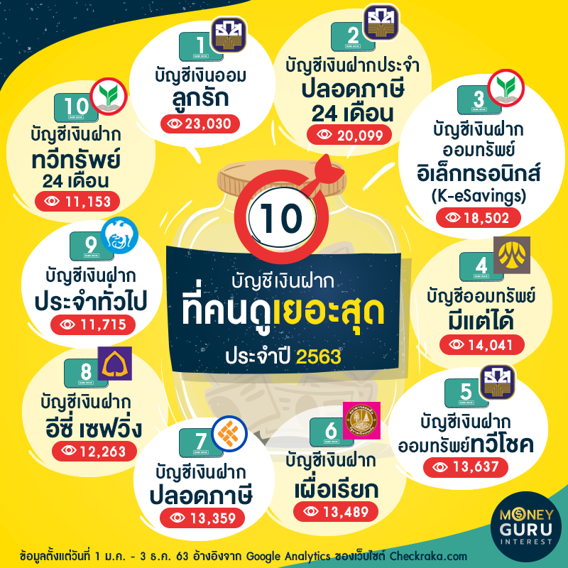 ส่งท้ายปลายปีกับเรื่องที่สายออมห้ามพลาด "10 อันดับสุดยอดบัญชีเงินฝากที่คนดูเยอะสุด ประจำปี 2563" จากการเก็บสถิติบนเว็บไซต์