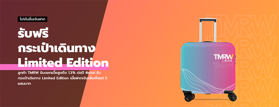โปรโมชั่นฝากเงินดอกเบี้ยสูงกับ TMRW รับกระเป๋าเดินทาง Limited Edition