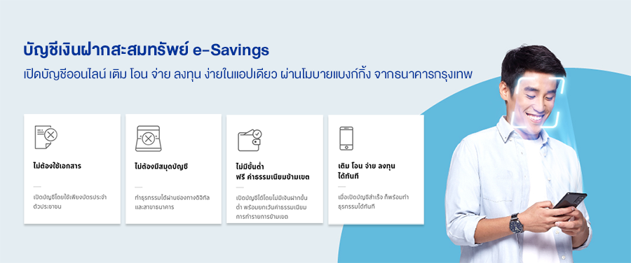 เงื่อนไขบัญชีเงินฝากสะสมทรัพย์ e-Savings - เป็นบัญชีเงินฝากสะสมทรัพย์ ประเภทไม่มีสมุดคู่ฝาก