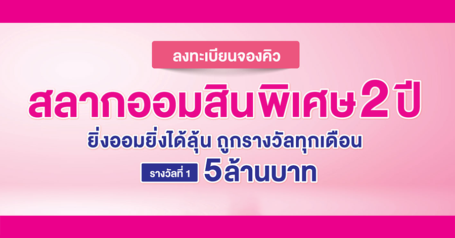 ลงทะเบียนจองสิทธิ สลากออมสินพิเศษ 2 ปี ยิ่งออมยิ่งได้ลุ้น ถูกรางวัลทุกเดือน