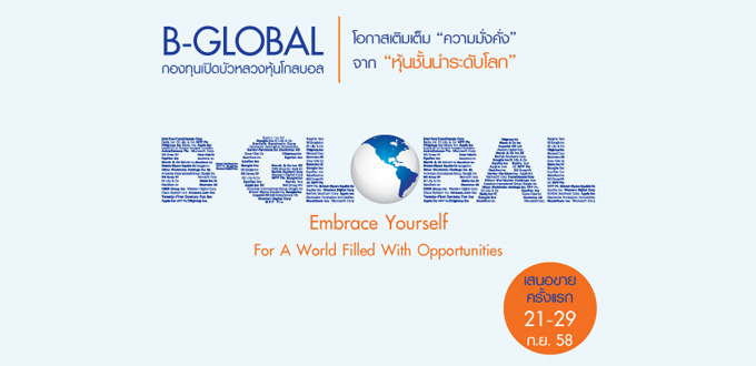 กองทุนเปิดใหม่ : กองทุนเปิดบัวหลวงหุ้นโกลบอล (B-GLOBAL) เสนอขายครั้งแรก 21 - 29 ก.ย. 58