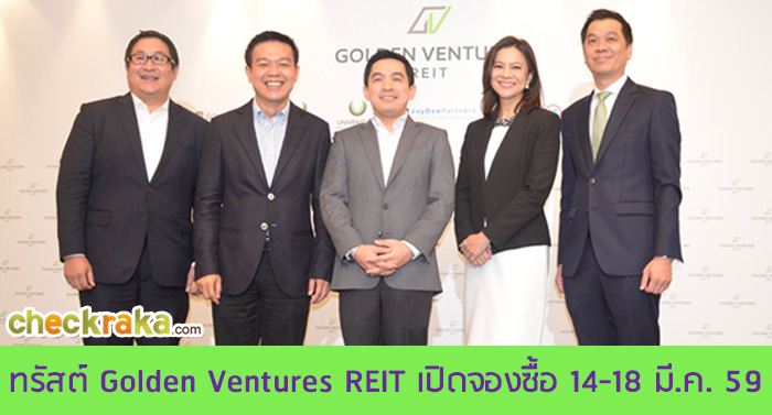 "ยูนิเวนเจอร์" จับมือ "แผ่นดินทอง พร็อพเพอร์ตี้" ร่วมนำอาคารสำนักงานเกรด A "ปาร์คเวนเชอร์ อีโคเพล็กซ์" (ไม่รวมพื้นที่โรงแรมดิ โอกุระฯ) และ "สาทร สแควร์" บนทำเลทองเพลินจิตและสาทรติด BTS มาเป็นทรัพย์สินเพื่อจัดตั้งทรัสต์เพื่อการลงทุนในสิทธิการเช่าอสังหาริมทรัพย์โกลเด้นเวนเจอร์ หรือ Golden Ventures REIT ซึ่งมีจุดเด่นเป็นอาคารอนุรักษ์พลังงานที่เป็นมิตรต่อสิ่งแวดล้อม (Green Building) สร้างความเชื่อมั่นให้แก่นักลงทุน หนุนอัตราการเช่าพื้นที่เฉลี่ยเกือบเต็ม 100% ของพื้นที่ทั้งหมด โดยจะเปิดจองซื้อหน่วยทรัสต์ในราคา 10 บาท ในระหว่างวันที่ 14 - 18 มี.ค. 59