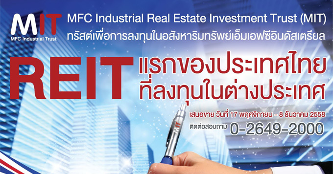 ทรัสต์เพื่อการลงทุนในอสังหาริมทรัพย์เอ็มเอฟซีอินดัสเตรียล (MIT) เปิดจองซื้อ 17 พ.ย. - 8 ธ.ค. 58