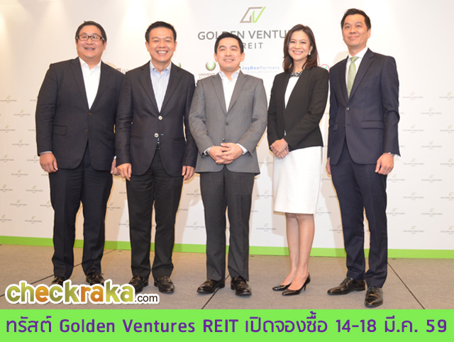 "ยูนิเวนเจอร์" จับมือ "แผ่นดินทอง พร็อพเพอร์ตี้" ร่วมนำอาคารสำนักงานเกรด A "ปาร์คเวนเชอร์ อีโคเพล็กซ์" (ไม่รวมพื้นที่โรงแรมดิ โอกุระฯ) และ "สาทร สแควร์" บนทำเลทองเพลินจิตและสาทรติด BTS มาเป็นทรัพย์สินเพื่อจัดตั้งทรัสต์เพื่อการลงทุนในสิทธิการเช่าอสังหาริมทรัพย์โกลเด้นเวนเจอร์ หรือ Golden Ventures REIT ซึ่งมีจุดเด่นเป็นอาคารอนุรักษ์พลังงานที่เป็นมิตรต่อสิ่งแวดล้อม (Green Building) สร้างความเชื่อมั่นให้แก่นักลงทุน หนุนอัตราการเช่าพื้นที่เฉลี่ยเกือบเต็ม 100% ของพื้นที่ทั้งหมด โดยจะเปิดจองซื้อหน่วยทรัสต์ในราคา 10 บาท ในระหว่างวันที่ 14 - 18 มี.ค. 59
