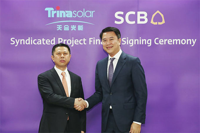 นายอาทิตย์ นันทวิทยา ประธานเจ้าหน้าที่บริหารและรองประธานกรรมการบริหาร ธนาคารไทยพาณิชย์ กล่าวว่า "ในฐานะธนาคารชั้นนำของประเทศไทย ไทยพาณิชย์มีความมุ่งมั่นที่จะสนับสนุน การเติบโตของเศรษฐกิจไทย จึงดำเนินการสานต่อนโยบายสนับสนุนการลงทุนจากต่างประเทศ โดยเฉพาะนักลงทุนจากจีนที่เห็นโอกาสการลงทุนในประเทศไทย ซึ่งที่ผ่านมา เราได้สนับสนุนการลงทุนจากประเทศจีนในโครงการต่างๆ ไปแล้วกว่า 15,000 ล้านบาท และมีเป้าหมายที่จะเติบโตเป็นสองเท่าให้ได้ภายใน 3 ปีนี้ และล่าสุดยังได้ร่วมมือกับธนาคารหมินเซิง ประเทศจีน ให้การสนับสนุนทางการเงินมูลค่า 100 ล้านเหรียญสหรัฐ และธนาคารให้วงเงินทุนหมุนเวียนเพิ่มเติมอีกกว่า 43 ล้านเหรียญสหรัฐ แก่บริษัท ทรินา โซลาร์ ไซเอนซ์ แอนด์ เทคโนโลยี (ประเทศไทย) จำกัด เพื่อจัดตั้งโรงงานผลิตแผงเซลล์แสงอาทิตย์ขนาด 700 เมกะวัตต์ และขนาด 500 เมกะวัตต์ ขึ้นในประเทศไทยที่ นิคมอุตสาหกรรมอมตะซิตี้ จ.ระยอง โดยเริ่มเดินเครื่องการผลิตแล้วในเดือนมีนาคม 2559"