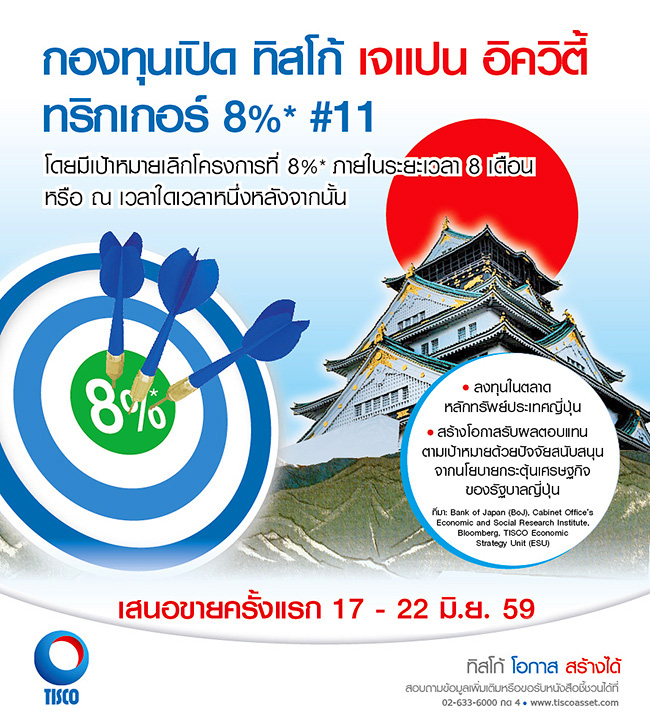 กองทุนเปิด ทิสโก้ เจแปน อิควิตี้ ทริกเกอร์ 8% #11 เสนอขายครั้งแรก 17 - 22 มิ.ย. 59