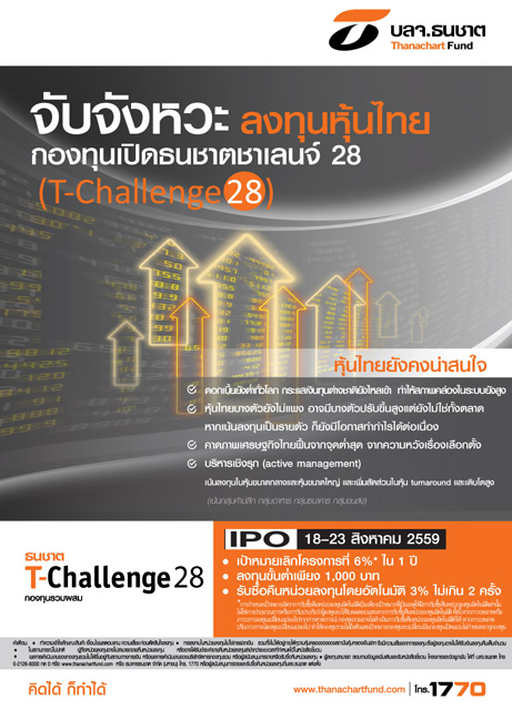 กองทุนเปิดธนชาตชาเลนจ์ 28 (T-Challenge 28) จาก บลจ.ธนชาต จับจังหวะลงทุนหุ้นไทย เป้าหมายเลิกโครงการที่ 6% ใน 1 ปี ลทุนขั้นต่ำเพียง 1,000 บาท
