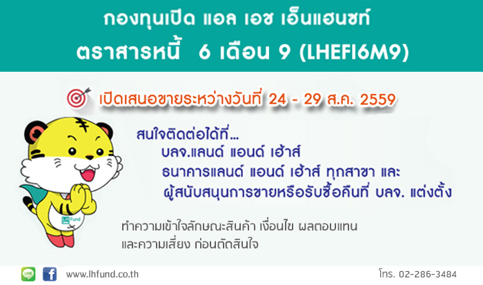 กองทุนเปิด LHEFI6M9 ครบกำหนดการลงทุน และเปิดรับคำสั่งลงทุนรอบใหม่ 24 - 29 ส.ค. 59
