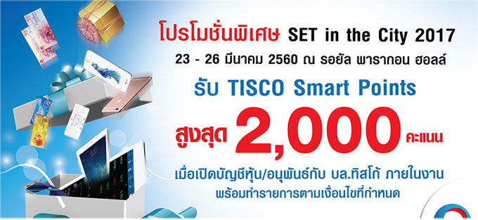 รับ TISCO Smart Points สูงสุด 2,000 คะแนน เมื่อเปิดบัญชีหุ้น ในงาน SET in the City 2017