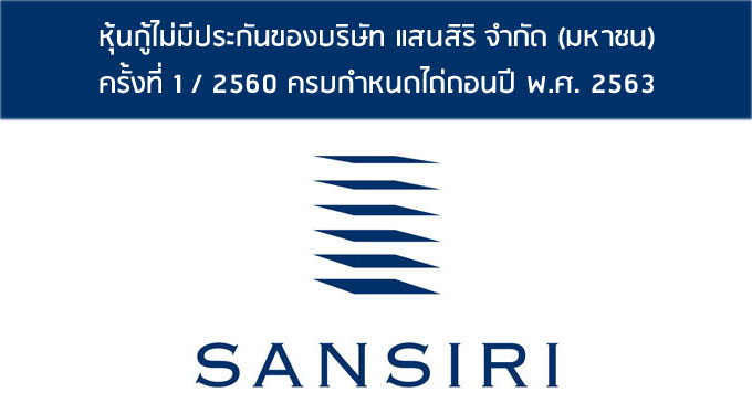 หุ้นกู้ของบริษัท แสนสิริ จำกัด (มหาชน) ครั้งที่ 1/2560 ครบกำหนดไถ่ถอนปี พ.ศ. 2563