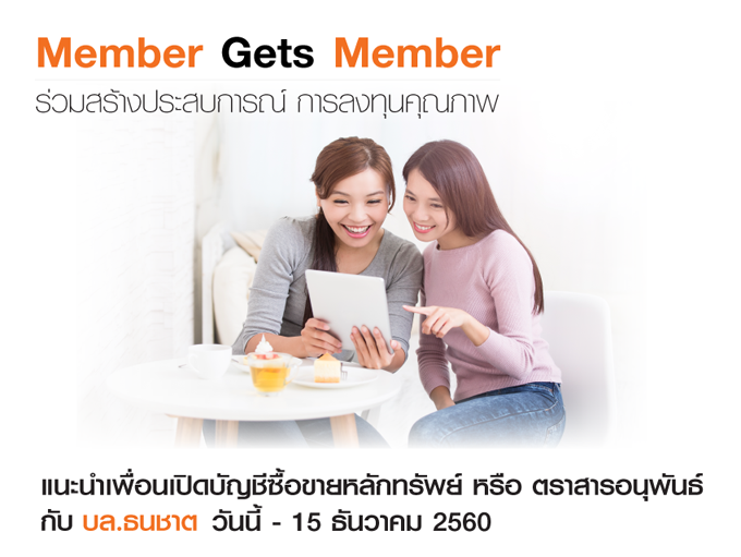 แนะนำเพื่อนเปิดบัญชีซื้อขายหลักทรัพย์ หรือตราสารอนุพันธ์ กับ บล.ธนชาต วันนี้ - 15 ธันวาคม 2560