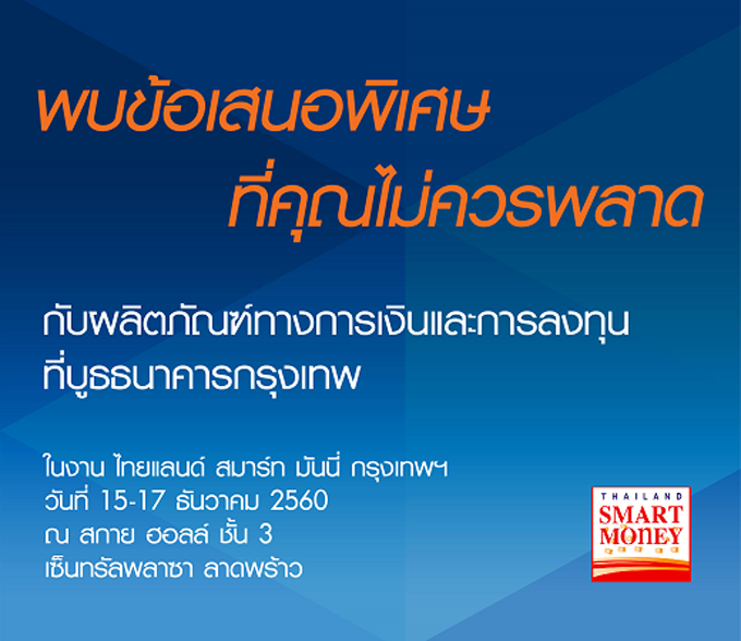 พบข้อเสนอสุดพิเศษส่งท้ายปี ที่บูธธนาคารกรุงเทพ ในงานไทยแลนด์ สมาร์ท มันนี่ กรุงเทพฯ ครั้งที่ 8