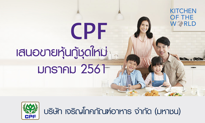 CPF เสนอหุ้นกู้ชุดใหม่ อายุ 7 ปี และ 10 ปี เปิดจองซื้อภายในเดือนมกราคม 2561