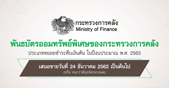 ระยะเวลาการจัดจำหน่ายพันธบัตร - วันที่ 23 ธันวาคม 2562 - 24 เมษายน พ.ศ. 2563