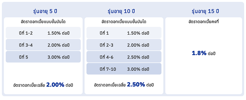 - หากวันจ่ายดอกเบี้ยตรงกับวันหยุดธนาคาร จะชำระดอกเบี้ยในวันทำการถัดไป