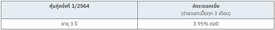 คาดว่าจะเปิดจองซื้อวันที่ 10 - 12 พฤษภาคม 2564 ที่สาขาธนาคารกรุงเทพ (ยกเว้นสาขาไมโคร)