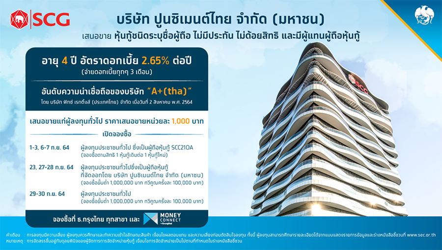 บริษัท ปูนซิเมนต์ไทย จำกัด (มหาชน) เสนอขายหุ้นกู้ ชนิดระบุผู้ถือ ไม่มีประกัน ไม่ด้อยสิทธิ และมีผู้แทนผู้ถือหุ้นกู้