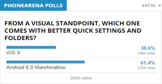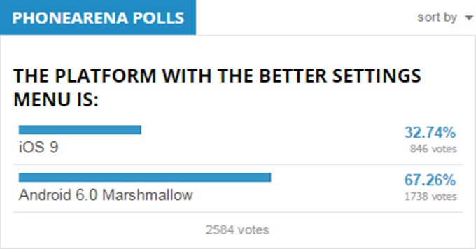 การตั้งค่า ระบบ Android นั้นก็ได้คะแนนโหวตนำ iOS ไปอีกจนได้ ด้วยคะแนน 1,738 ต่อ 846 คะแนน