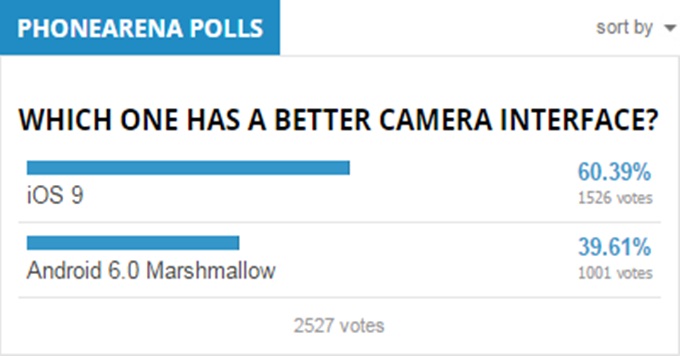 แต่มาข้อนี้ในส่วนของกล้อง ทางฝ่าย iOS นั้นได้รับคะแนนโหวตไปเต็มๆ ด้วยคะแนน 1,562 ต่อ 1,001 คะแนน