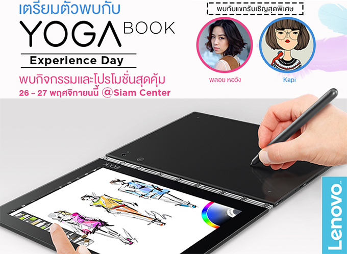 เลอโนโว ผู้นำยอดขายคอมพิวเตอร์อันดับ 1 จัดกิจกรรม YOGA Book Experience Day เอาใจผู้ใช้งาน ให้ได้ทดลองผลิตภัณฑ์ Yoga Book แท็บเล็ต 2 in 1 รุ่นใหม่ล่าสุดของเลอโนโว ทั้งระบบ Android และ Window ได้ก่อนใคร พร้อมพบกับ พลอย หอวัง ดีไซน์เนอร์และพิธีกรชื่อดัง, กะปิ-ปิยนาฏ ต้นมาลี นักวาดภาพประกอบที่จะมาแชร์ประสบการณ์การใช้งานผลิตภัณฑ์ Yoga Book พิเศษสุดสำหรับผู้ซื้อผลิตภัณฑ์ Yoga Book ภายในงาน รับฟรีทันที ปริ้นเตอร์ Canon iP2870S มูลค่า 1,290 บาท