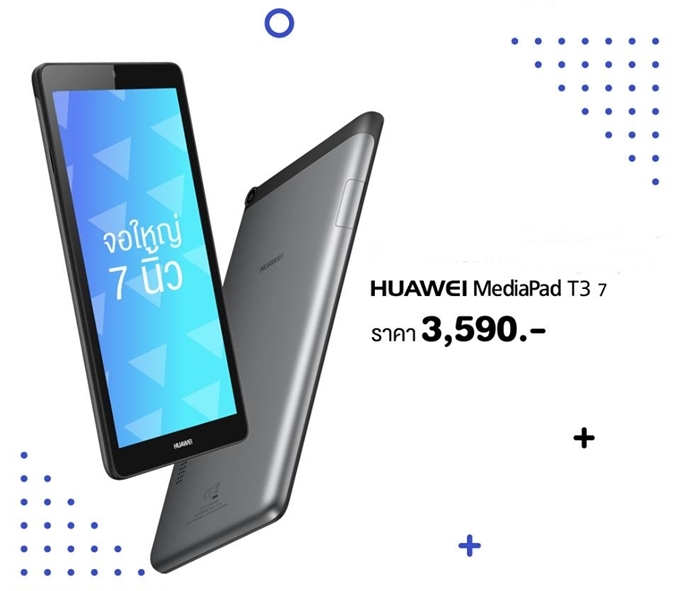 หัวเว่ย MediaPad T3 7 แฟ็บเล็ตที่เป็นทั้งโทรศัพท์และแท็บเล็ตในเครื่องเดียว มาพร้อมสี Space Gray ราคาสุดคุ้ม เพียง 3,590 บาท ให้ทุกคนเป็นเจ้าของได้ง่ายๆ จำหน่ายแล้ววันนี้ที่ หัวเว่ยแบรนด์ช็อป หรือซื้อออนไลน์ผ่านเว็บไซต์เช็คราคา ได้ที่ลิ้งก์ "ซื้อออนไลน์" ด้านล่างนี้