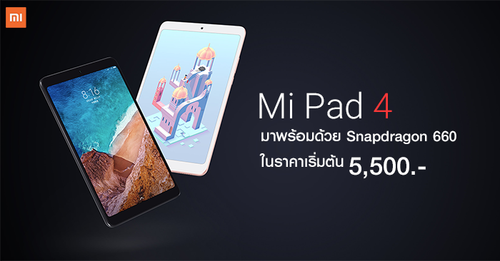Xiaomi Mi Pad 4 แท็บเล็ตแอนดรอยด์รุ่นใหม่ มาพร้อมด้วย Snapdragon 660 ในราคาเริ่มต้น 5,500.-