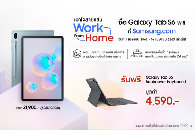 พิเศษ! ซื้อวันนี้ - 16 เมษายน 63 นี้ รับฟรีทันที Samsung Galaxy Tab S6 Bookcover Keyboard มูลค่า 4,590 บาท เป็นเจ้าของได้แล้วที่ Samsung.com