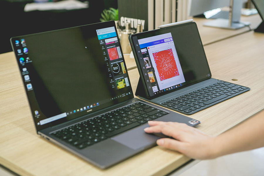 ส่วนสายกราฟิก มัลติมีเดียที่ต้องพรีเซนต์งานนอกสถานที่กับลูกค้าอาจใช้วิธีแคสต์หน้าจอจากแล็ปท็อป ไปที่แท็บเล็ตแบบ Mirror Mode เพื่อให้ลูกค้าดูสไลด์ไปพร้อมกับที่ตนเองควบคุมพรีเซนเทชันเองได้ หรือระหว่างทำธุระข้างนอกแต่งานตัดต่อต้องส่งด่วน ก็สามารถใช้ Extend Mode แบ่งให้แท็บเล็ตกลายเป็นจอที่สอง เพื่อตัดงานส่งให้ทันเดดไลน์ได้ง่ายกว่าเดิม หากใช้อีโคซิสเต็มของหัวเว่ยก็สามารถใช้ HUAWEI MateBook Series และเชื่อมต่อกับ HUAWEI MatePad Pro 12.6-inch โดยทำ Multi-screen Collaboration ผ่าน HUAWEI Share ได้เลย กรณีนี้ยังสามารถทำงานในแท็บเล็ตแบบเร็วๆ แล้วส่งไฟล์ข้ามระบบปฏิบัติการด้วย Collaborate Mode ได้ด้วย