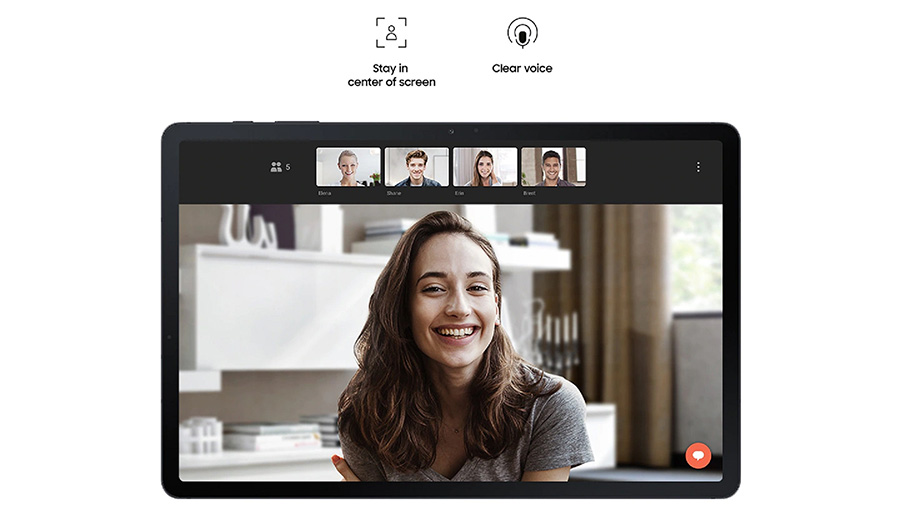 โดยทั่วไปการเรียนออนไลน์มักจะอยู่ในรูปแบบ VDO Conference ทำให้ลำโพงและกล้องมีความสำคัญเป็นอย่างมาก เพราะถ้าระบบเสียงไม่ดี ได้ยินไม่ชัด ย่อมมีผลต่อการเรียนแน่นอน และส่วนใหญ่ก่อนเริ่มเรียนยังต้องมีการเปิดกล้องหน้าเพื่อเป็นการเช็คชื่อการเข้าเรียนไปในตัว ดังนั้นด้วยลำโพงคู่และระบบเสียงอันคมชัดจาก Dolby Atmos ของ Galaxy Tab S7 FE จะช่วยให้ได้รับประสบการณ์คุณภาพเสียงที่ดีในทุกกิจกรรม ตั้งแต่การเรียนออนไลน์ ไปจนถึงการดูซีรีส์เรื่องโปรด นอกจากนี้ยังมาพร้อมไมโครโฟนสามตำแหน่ง กล้องหน้าตำแหน่งตรงกลางจอความละเอียด 5 ล้านพิกเซล เปิดกล้องตอบคำถามหรือพรีเซนต์การบ้านได้อย่างมั่นใจเหมือนอยู่ต่อหน้า เรียกคะแนนจากอาจารย์ได้เต็มๆ