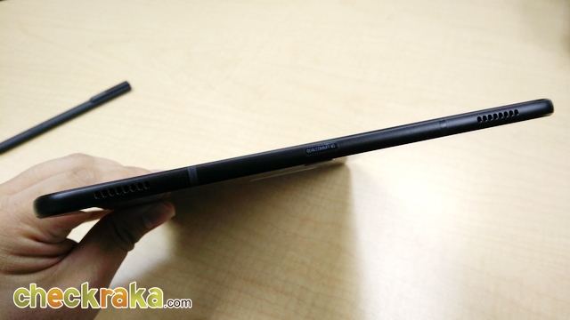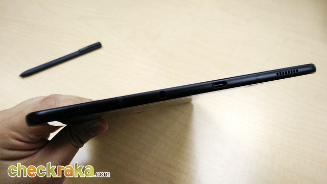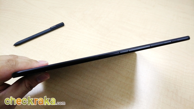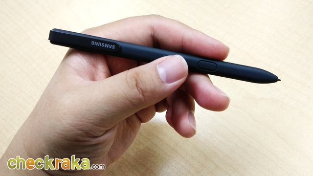 ปากกา S Pen มีขนาดใหญ่ จับเขียนถนัดมือมากกว่าเดิม ขนาดเท่ากับปากกาลูกลื่นเลยครับ หัวปากกาขนาด 0.7 มม. รองรับแรงกดสูงถึง 4,096 ระดับ และไม่ต้องชาร์จแบตเตอรี่ สามารถใช้งานได้เลยเหมือนปากกา S Pen ขนาดปกติ แต่ตัวแท็บเล็ตไม่มีช่องใส่ปากกานะครับ ทำให้อาจจะหล่นหายกันได้ง่ายๆ ซึ่งสามารถหาซื้อ Book Cover มาใช้งานกันได้ครับ โดยตัวเคสจะมีแม่เหล็กอยู่ สามารถดูดติดปากกา S Pen เอาไว้ได้เวลาพกพา (ราคา 1,590 บาท) และควรเก็บรักษาเอาไว้ให้ดีๆ นะครับ ปากกา S Pen ถ้าหายขึ้นมา ด้ามละ 1,290 บาทเชียวนะ