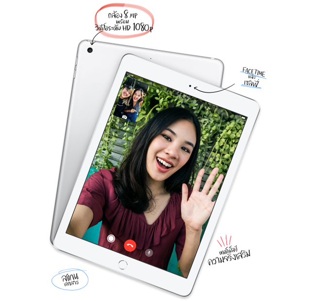 - โดย iPad 2018 มาพร้อมกล้องถ่ายรูปความละเอียด 8 ล้านพิกเซล (F2.4) รองรับการบันทึกภาพวีดีโอความละเอียดสูงสุดที่ FullHD และกล้องหน้าความละเอียด 1.2 ล้านพิกเซล รองรับการบันทึกวีดีโอและ Live VDO ที่ความละเอียดระดับ HD (720P)